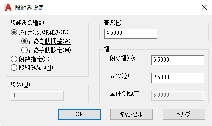 段および間隔の幅値が表示され、値を指定できます。間隔の値は、既定の文字の高さの 5 倍です。