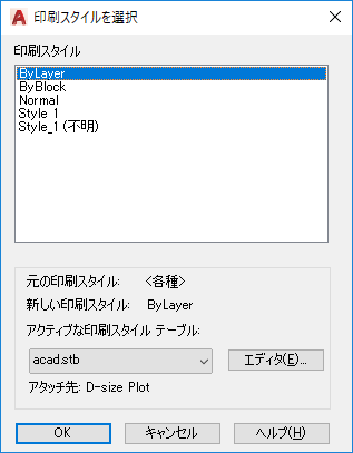現在の図面にアタッチされている印刷スタイル テーブルが表示されます。印刷スタイル テーブルは、印刷スタイルを定義したものです。