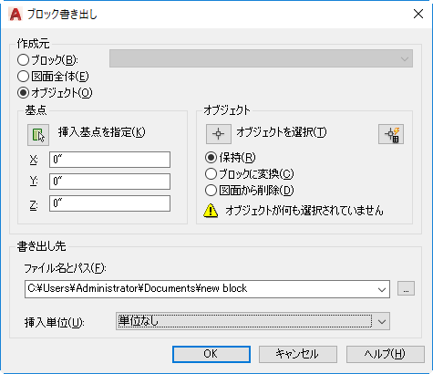 ブロックまたはオブジェクトを保存するファイル名とパスを指定します。