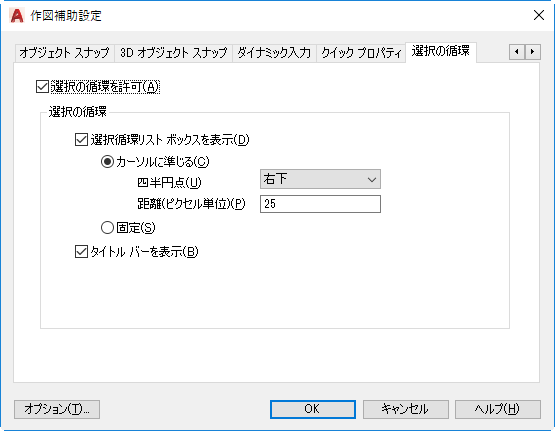 選択の循環機能をオンにするかどうかをコントロールします(システム変数 SELECTIONCYCLING)。