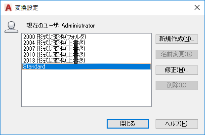 DWGCONVERT[DWG 変換] (コマンド) 検索: [変換設定]