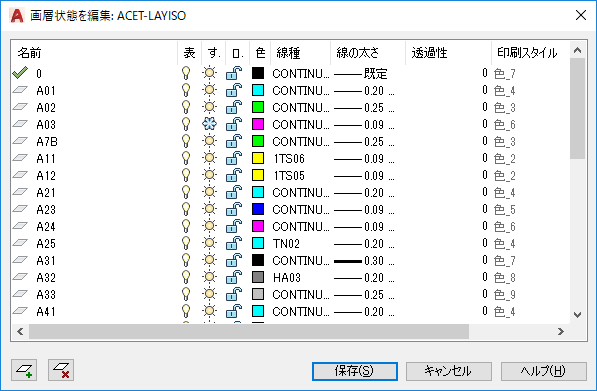 LAYER[画層管理] (コマンド) 検索: [画層状態管理] > [編集]