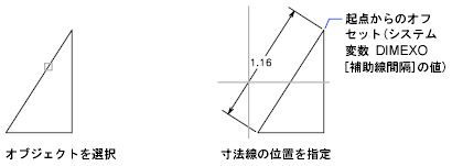 オブジェクトを選択すると、1 本目と 2 本目の寸法補助線の起点が自動的に決まります。