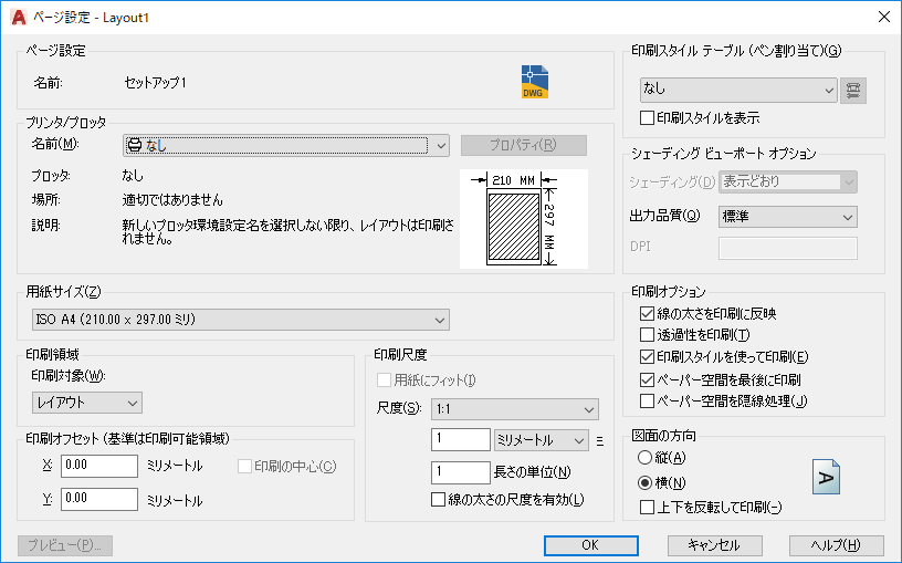 横向きまたは縦向きの方向をサポートするプロッタの用紙について図面の方向を指定します。