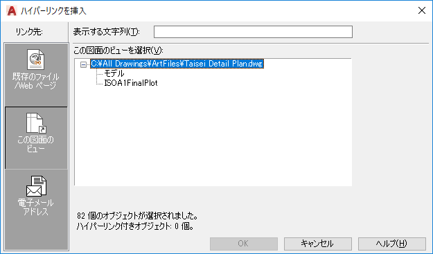 現在の図面内の名前の付いたビューをリンク先として指定します。