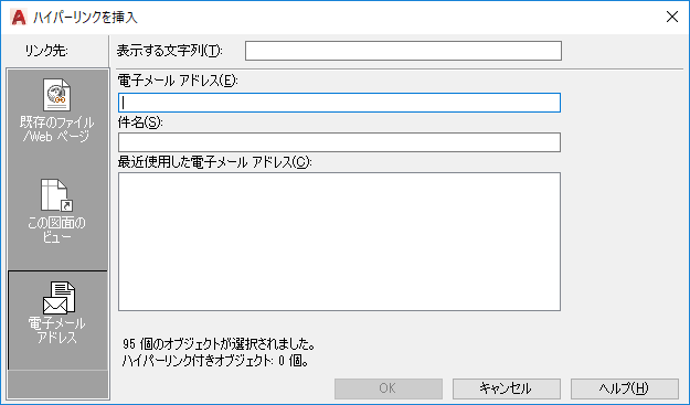 最近使用した電子メール アドレスがリストされ、ハイパーリンクに使用するアドレスを選択できます。