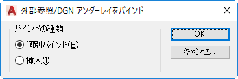 選択した DWG 参照を、現在の図面にバインドします。外部参照に従属する名前の付いたオブジェクトが、blockname|definitionname から blockname$n$definitionname の構文に変更されます。このように、現在の図面にバインドされた外部参照に従属するすべての定義テーブルに対して、一意の名前の付いたオブジェクトが作成されます。