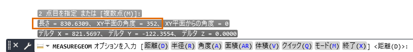 計測結果は、コマンド ウィンドウに表示されます。必要に応じて、[F2]を押してコマンドウィンドウを展開します。