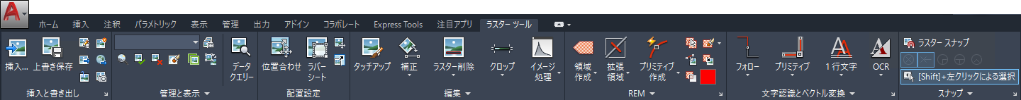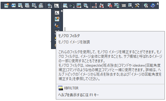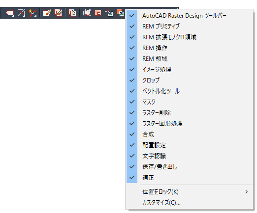 [AutoCAD Raster Design Toolset]ツールバーと開いたサブメニューとツールチップ