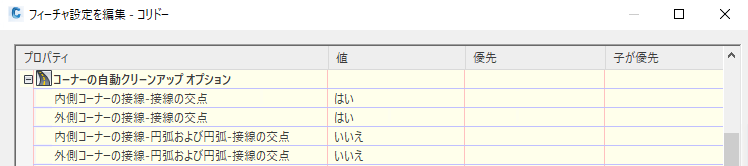 詳細については、「概要 - コリドーのコーナーのクリーンアップ」を参照してください。