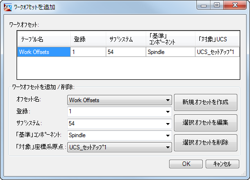 次の方法で、ワーク オフセットを追加 ダイアログを使用します。