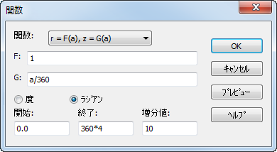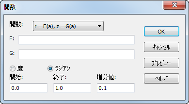 r = F(a), z = G(a) は、Z 座標が角度の関数として指定された分極関数に使用します。