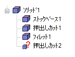 ソリッド デザイン フィーチャーがソリッドから切り離されると、パーツ ビューのソリッド アイコン上に次のような疑問符が表示されます。