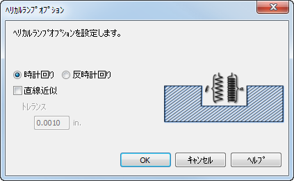 ヘリカル ランプ オプション ダイアログを使用して、フライス加工フィーチャーのヘリカル ランプ オプションを編集します。