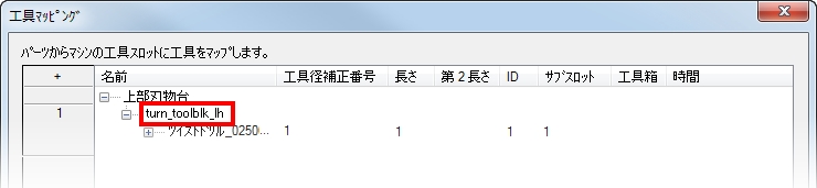 選択した工具ブロックが、工具マッピング ダイアログに表示されます。
