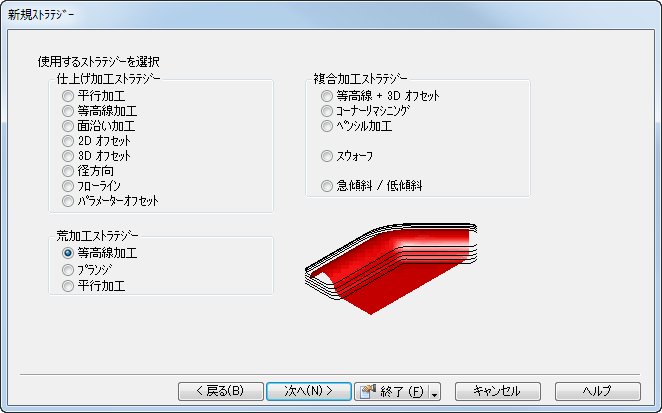 次の方法で、等高線荒加工工程を作成します。