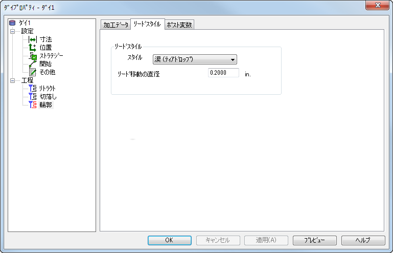 スタイル ドロップダウン リストからオプションを選択して、リード移動の直径 を入力します。