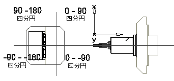 デフォルトで、第 1 回転軸 (構成が「B マシン上 A」のマシンの B 軸) の回転は、0 から 90 と 90 から 180 の四分円で実行されます。