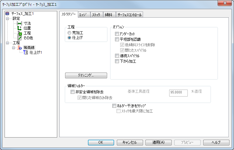 平坦部を認識 オプションを選択した場合、アンダーカット を利用することはできません。