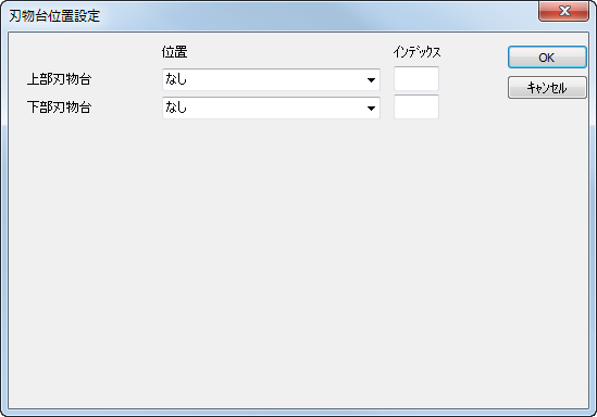 このダイアログを使用して、パーツ ハンドリング中の各刃物台の 位置 と インデックス を設定します。