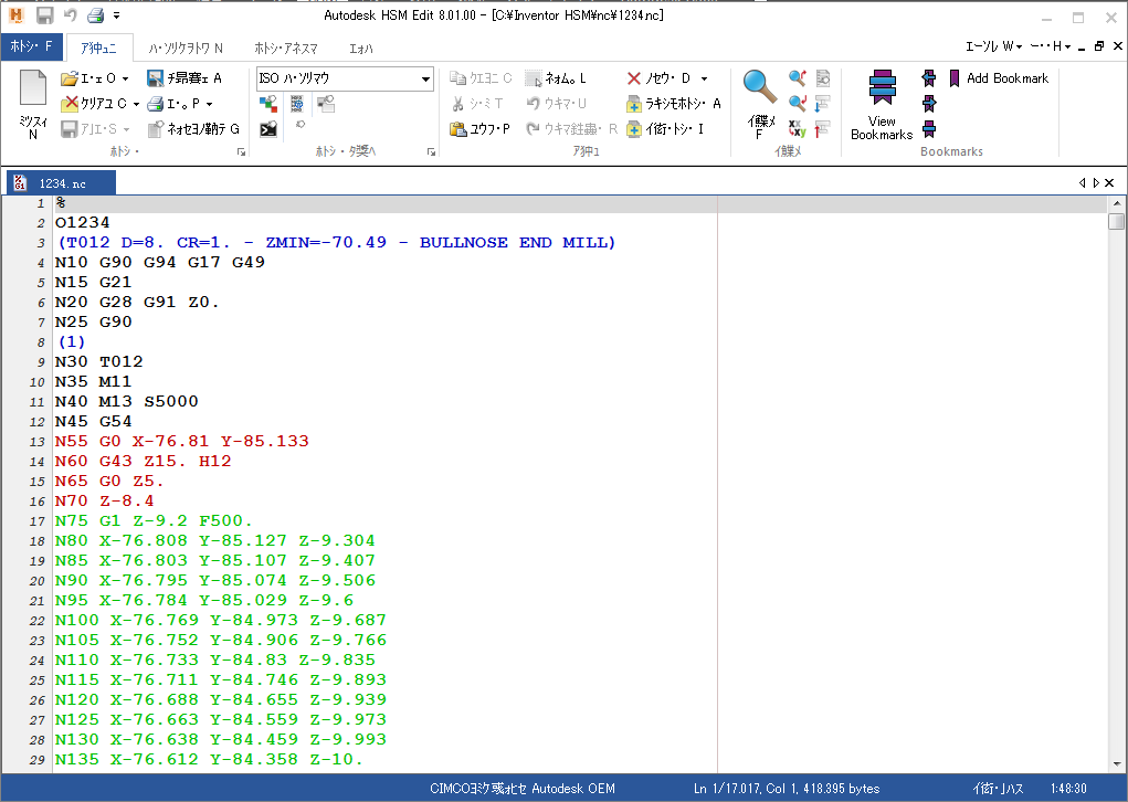 機械の NC コードを作成します。