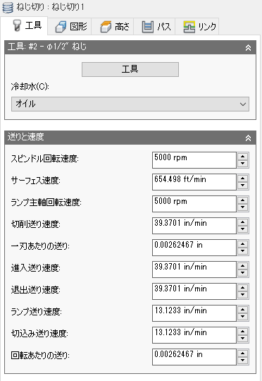 - 傾斜スピンドル速度: ランプ移動実行時の主軸の回転速度