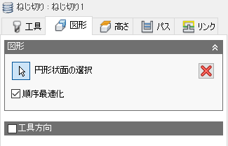 要確認: 切削方向、穴のタイプ(OD または ID)およびねじ切りハンド方向(左または右)は、ねじ切りミルが開始される場所に影響します。これらの設定によって、上から下または下から上に切削することができます。