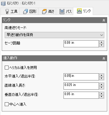 進入が進入からツールパスに移動するときに円滑化される垂直円弧の半径です。