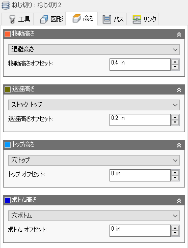 退避高さオフセットは、上にある退避高さのドロップダウン リストの選択内容を基準に適用されます。
