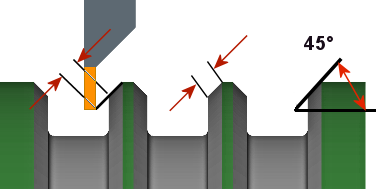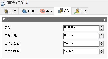 面取りの(追加)の幅です。面取りされていないエッジの場合、これは面取りの最終的な幅です。(以下に示す図を参照)
