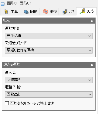回避高さ参照: 回避高さ退避を設定する新しい参照位置を選択します。