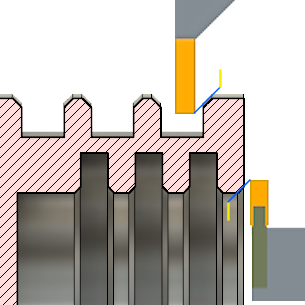 水色で表示され、「開始点」が外側半径の参照位置を設定します。参照は、ストック、モデル、指定した半径、直径、またはその他の半径方向の位置に関連付けることができます。この参照位置は、正または負のオフセット値で移動することができます。