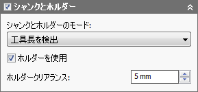 [工具長を検出]をホルダー クリアランス距離 5 mm に設定する