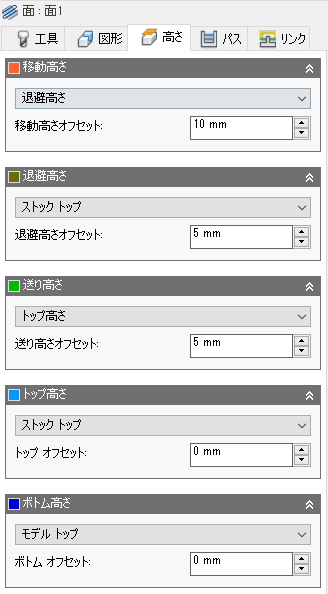 退避高さオフセットは、上にある退避高さのドロップダウン リストの選択内容を基準に適用されます。