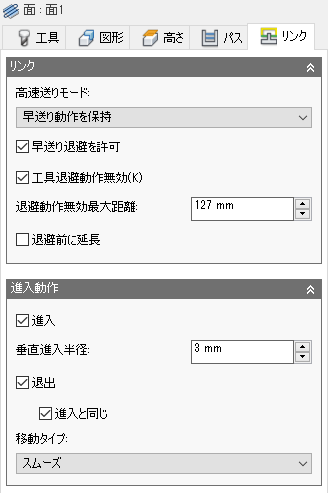 進入が進入からツールパスに移動するときに円滑化される垂直円弧の半径です。