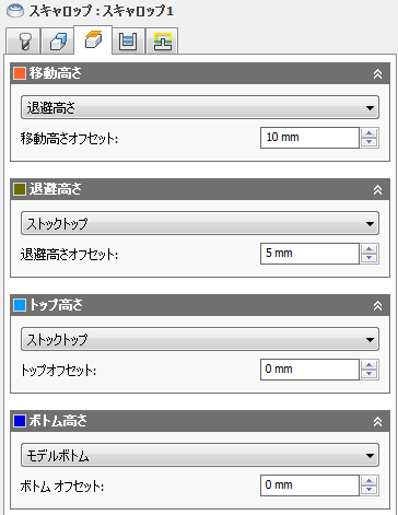 退避高さオフセットは、上にある退避高さのドロップダウン リストの選択内容を基準に適用されます。