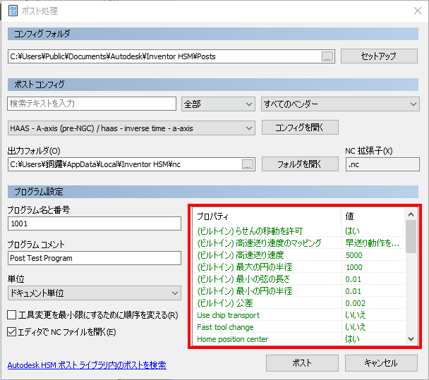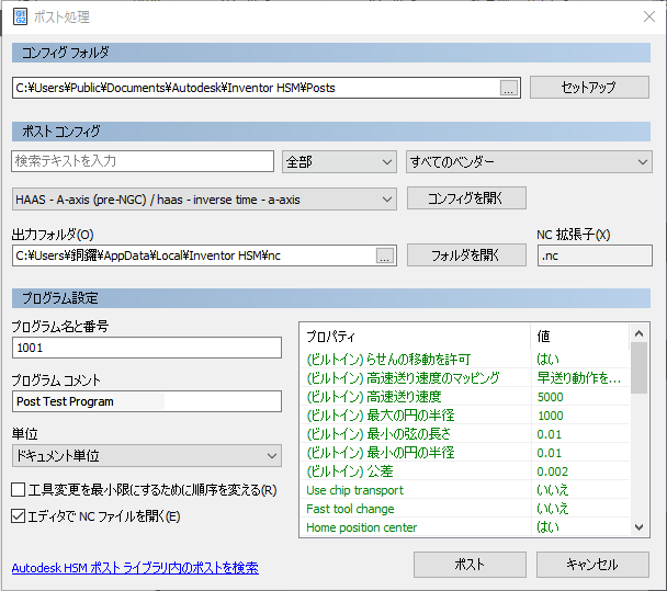 出力フォルダ: 新しい NC プログラムを保存する場所です。