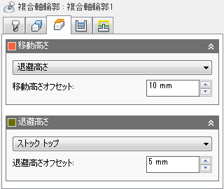 退避高さオフセットは、上にある退避高さのドロップダウン リストの選択内容を基準に適用されます。