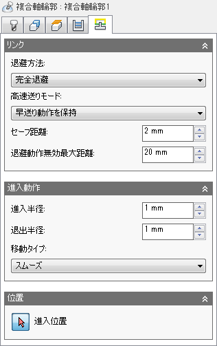 [正の仕上げ代]: 後続の粗取りまたは仕上げ操作で削除すべき、操作後の残りストックの量です。粗取り操作のために、既定値は少量の材料を残します。