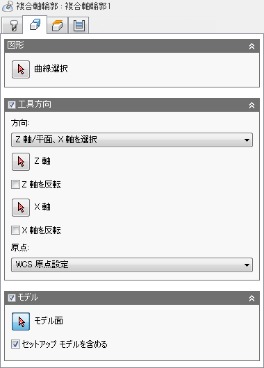 選択したツールの軸を指定して衝突を回避するには、ツールパスの計算に使用されます。