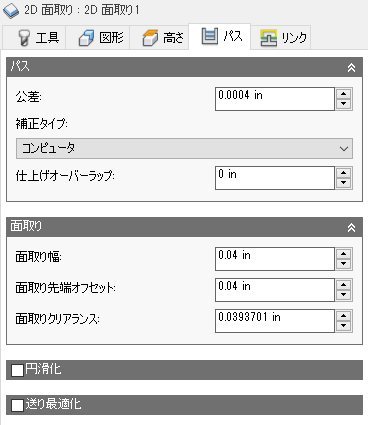 円滑化は、許容差(オリジナルの線形化パスが生成される精度)が円滑化(線分円弧継手)の許容差と等しいか大きい場合に最適に機能します。