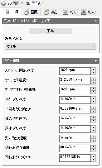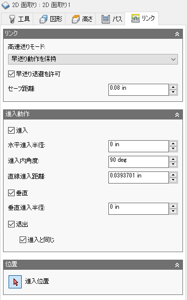 進入が進入からツールパスに移動するときに円滑化される垂直円弧の半径です。