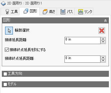 この値では、面取りされていないモデル図形から工具を退避する必要がある距離を指定します。