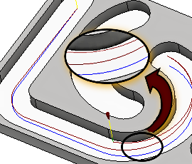 切削の終点に到達したら、工具が退避する前に壁から離れます。