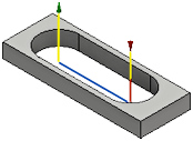 スロットが、エッジまたはスケッチを選択して中心線パスをフライス加工します。選択したスロットの周長の輪郭は描きません。工具は、実際のスロットの幅にするか、それよりも小さくする必要があります。スロット形状は、開閉いずれかの直線や円形にしたり、複数のカーブを含めることができます。ただし、連続幅のスロット形状にする必要があります。境界を加工する前にチャネルをクリアする場合に便利です。