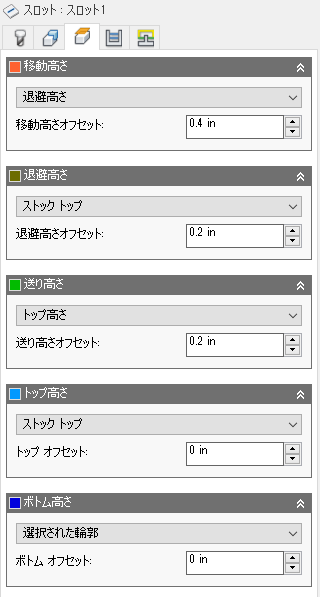 退避高さオフセットは、上にある退避高さのドロップダウン リストの選択内容を基準に適用されます。