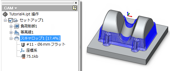 部分的に生成されたスキャロップ ツールパスのシミュレーション