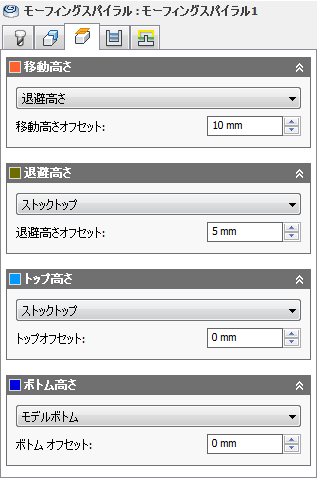 退避高さオフセットは、上にある退避高さのドロップダウン リストの選択内容を基準に適用されます。