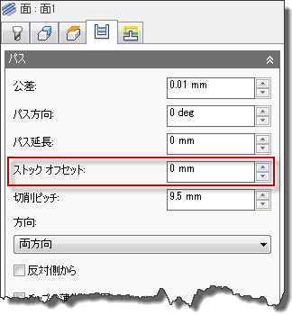 [パス]タブの[ストック オフセット]設定