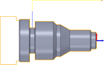水色で表示され、「開始点」が外側半径の参照位置を設定します。参照は、ストック、モデル、指定した半径、直径、またはその他の半径方向の位置に関連付けることができます。この参照位置は、正または負のオフセット値で移動することができます。